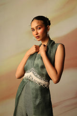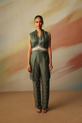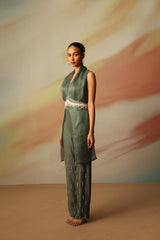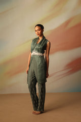 CROP TOP WITH HAND EMBROIDERED PANTS AND OVERLAY